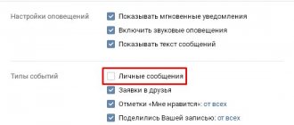 Here you can also adjust notifications about other events. If you click on the “Notify about all events” link, a drop-down window will open in front of you in which you can completely or partially turn off notifications in Contact. You can set up alerts for things that interest you, such as messages, friend requests, replies in comments, about and more. This will make using VKontakte even more convenient.